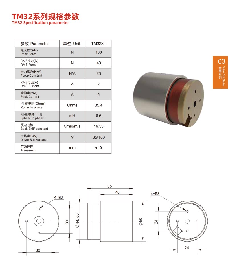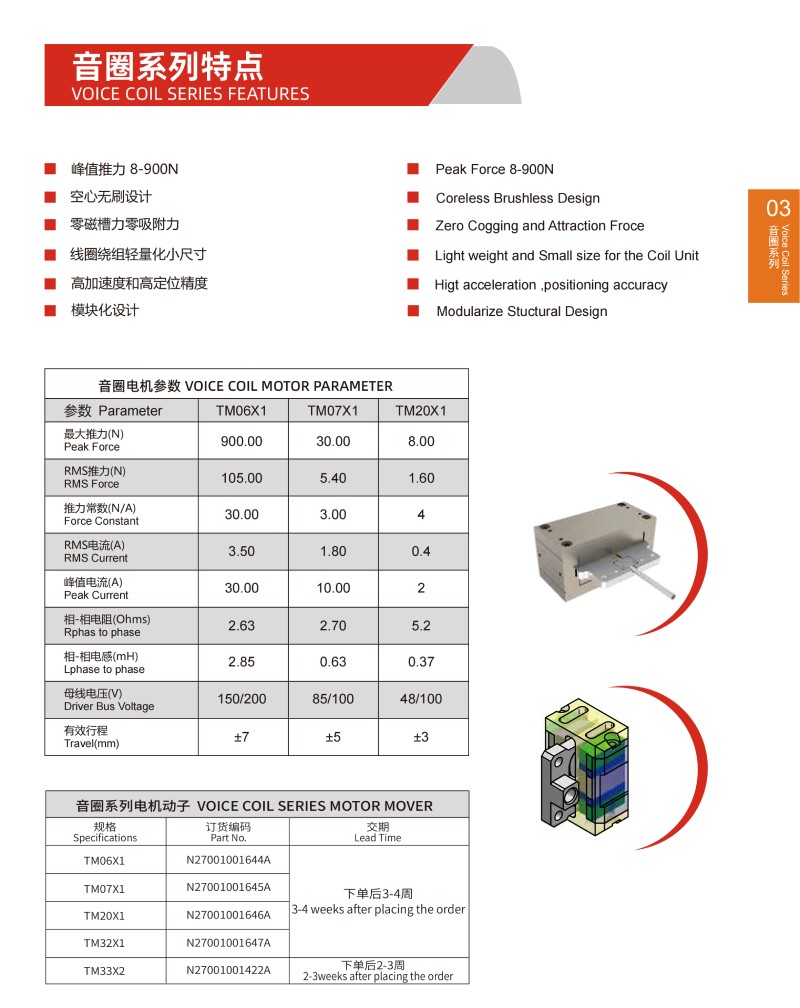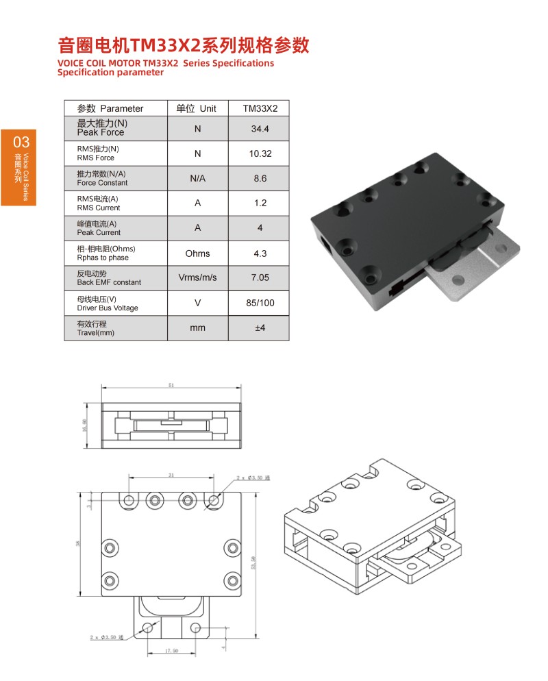 音圈直線電機參數VOICE COIL MOTOR PARAMETER