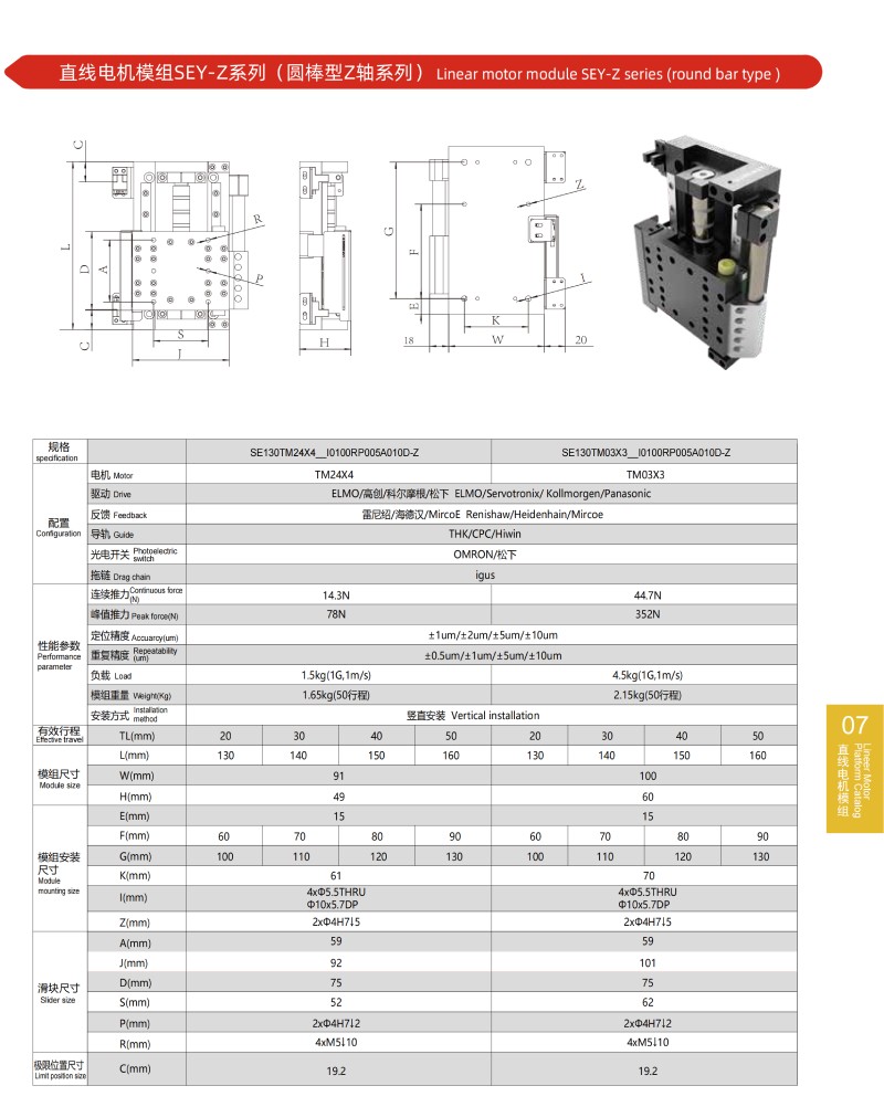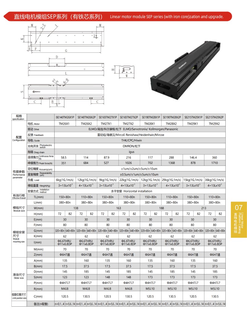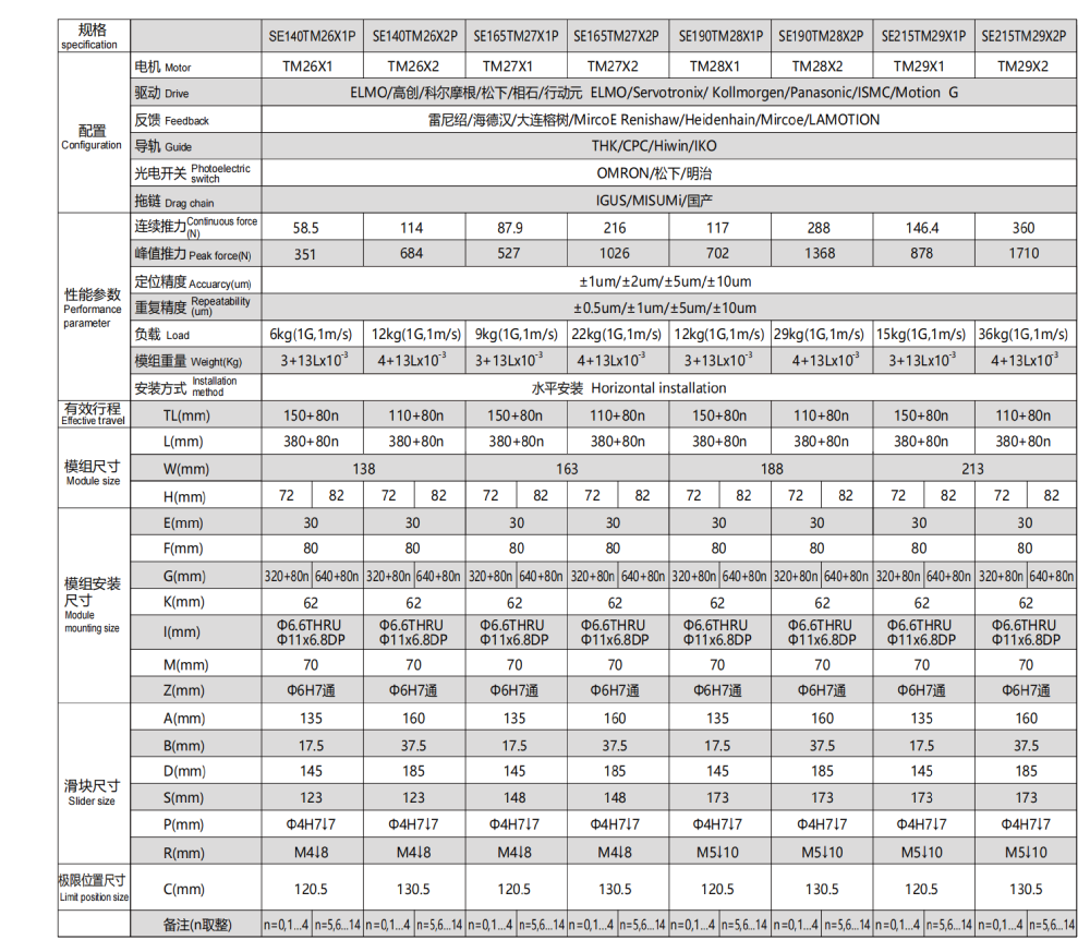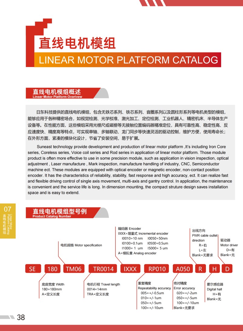 日東科技提供的直線電機模組,包含無鐵芯系列、鐵芯系列、音圈系列以及圓柱形系列等電機類型的模組,能夠應(yīng)用于各種精密場合,如視覺檢測、光學校準、激光加工、定位檢測、工業(yè)機器人、精密機床、半導體生產(chǎn)設(shè)備等。在性能方面,這些模組采用光柵尺或磁柵等無接觸位置編碼器精準定位,具有可靠性高、穩(wěn)定性高、反應(yīng)速度快、精度高等特點,可實現(xiàn)單軸、多軸聯(lián)動、龍門同步等快速靈活的驅(qū)動控制,維護方便,使用壽命長;在外形方面,緊湊的模塊化設(shè)計,節(jié)省了安裝空間,易于擴展。