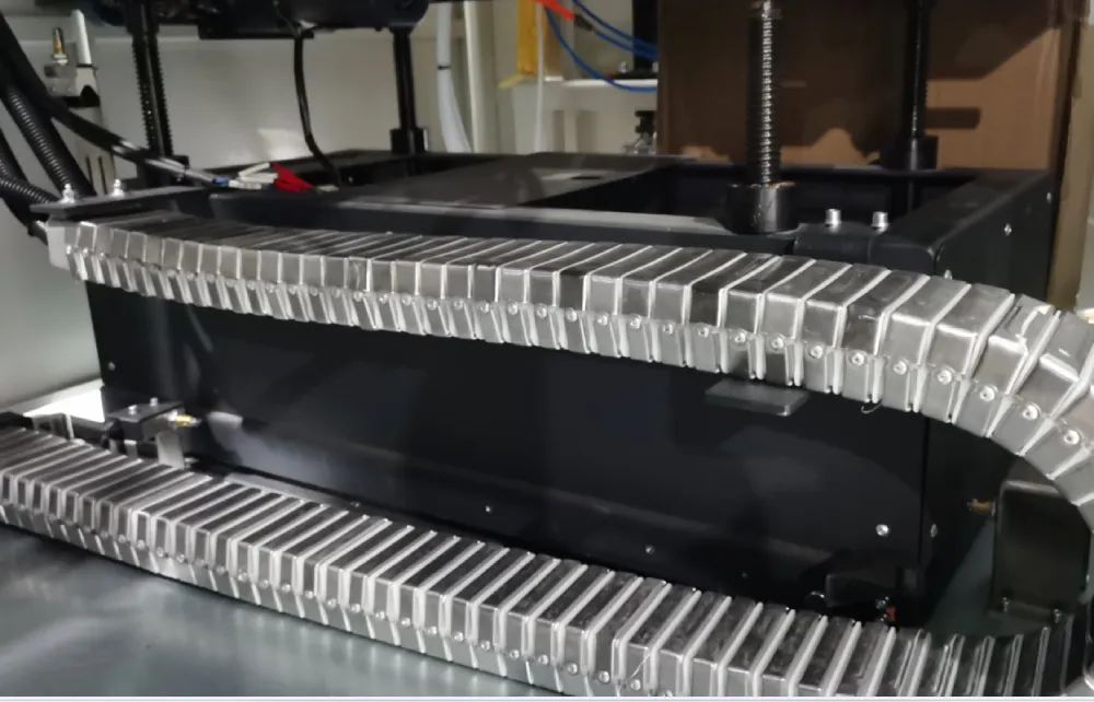 出口鏈條接駁段+寬皮帶輸送段,作為焊接區域出口側的延伸,保證焊接區殘氧量穩定的同時,起到與后端設備對接的作用。