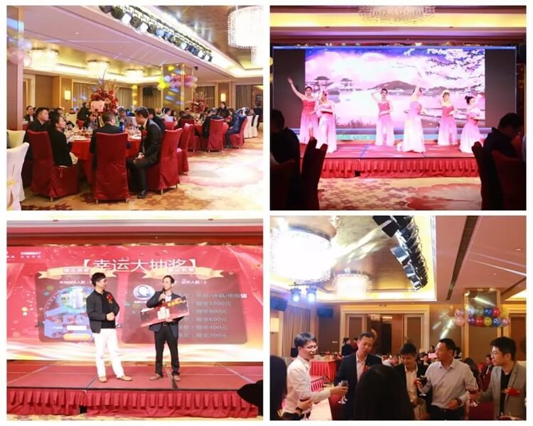 大會(huì)結(jié)束后,日東科技供應(yīng)商答謝晚宴在寶利來(lái)酒店宴會(huì)廳舉行,總經(jīng)理林曉新為2019年日東科技十大優(yōu)秀供應(yīng)商頒獎(jiǎng)。晚宴上還準(zhǔn)備了精彩的舞蹈表演和激動(dòng)人心的抽獎(jiǎng)環(huán)節(jié),在2020新年即將到來(lái)之際,大家歡聚一堂,推杯換盞,其樂(lè)融融!