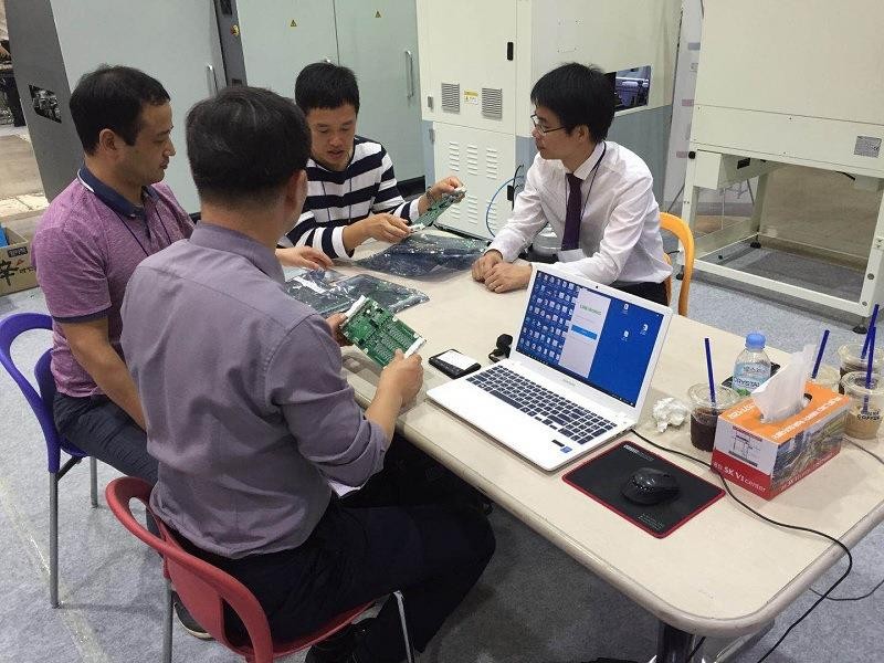 展會(huì)期間,前來(lái)參觀的觀展商絡(luò)繹不絕,對(duì)我們參展的機(jī)器——選擇性波峰焊SUNFLOW3產(chǎn)生了濃厚的興趣,在我們資深工程師的詳細(xì)解說(shuō)下,觀展商對(duì)我們的機(jī)器有了更深的了解。不少客戶咨詢了我們的機(jī)器,并帶著產(chǎn)品到展會(huì)現(xiàn)場(chǎng)測(cè)試,紛紛對(duì)我們產(chǎn)品的技術(shù)水平表示高度的贊許和認(rèn)可。