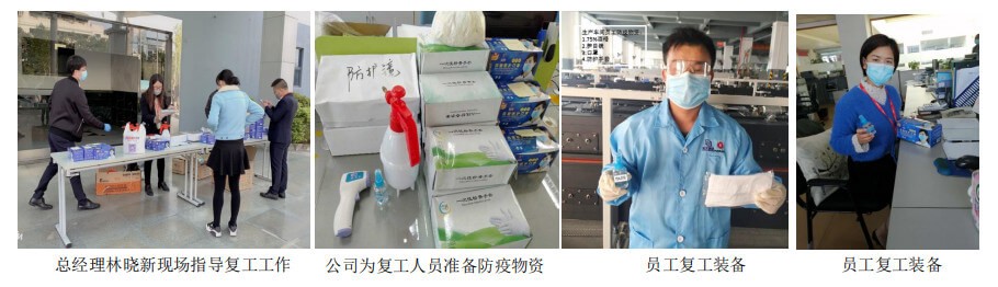 經(jīng)過福永街道審批同意,2月17日公司迎來了第一批復(fù)工員工。疫情發(fā)生后,公司成立了以總經(jīng)理林曉新為組長的防疫應(yīng)急小組,積極安排各項(xiàng)防疫和復(fù)工工作以應(yīng)對突如其來的疫情。假期內(nèi),公司密切關(guān)注全國疫情的發(fā)展,了解各地員工的健康情況、落實(shí)防疫物資的采購、做全員的行程排查、開展疫情知識的線上學(xué)習(xí)、安排返廠員工的隔離與生活、園區(qū)的消毒、就餐安全、客戶交期等方面進(jìn)行了細(xì)致的安排,嚴(yán)格落實(shí)各項(xiàng)防控主體責(zé)任。員工是公司的第一生產(chǎn)力,員工的安全與健康是公司的第一要?jiǎng)?wù)!