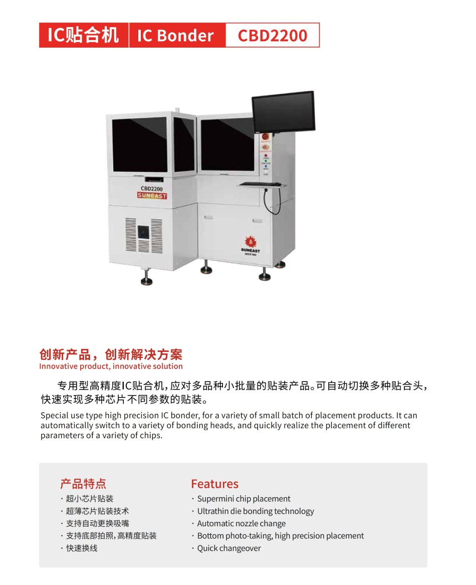 專用型高精度固晶貼合機,適用于多品種小批量的貼裝產品,可自動切換多種貼合頭,快速實現多種芯片不同參數的貼裝。主要應用于軍工產品中射頻和電源模塊的功率放大器。
